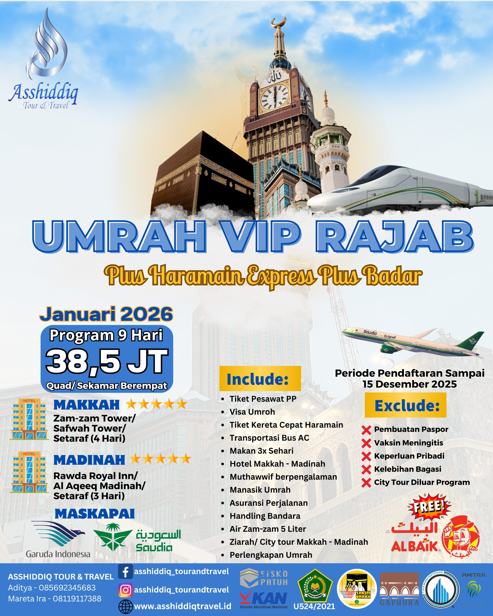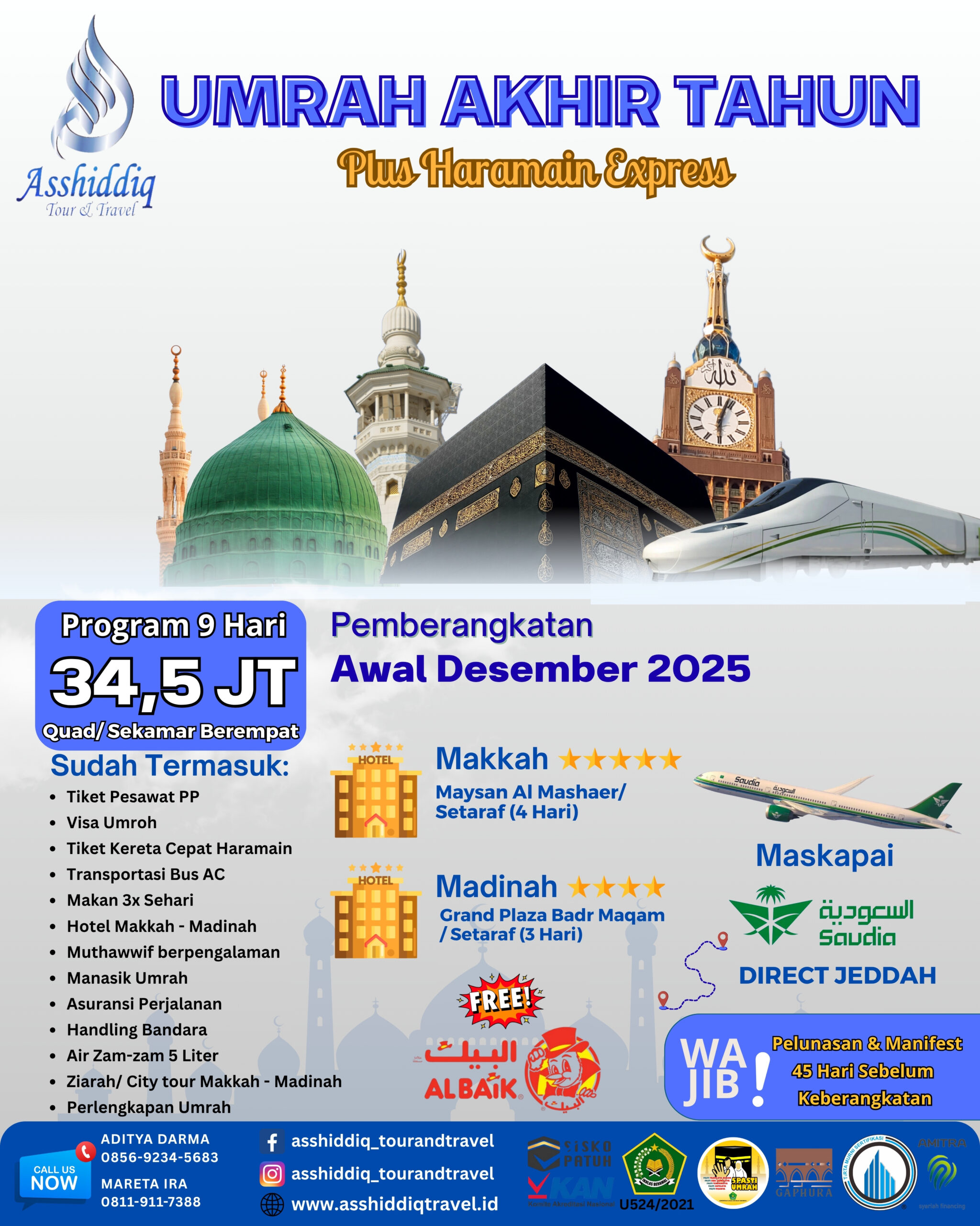 Asshiddiq menyediakan berbagai macam program perjalanan umroh, yang dapat disesuaikan keinginan jamaah.
